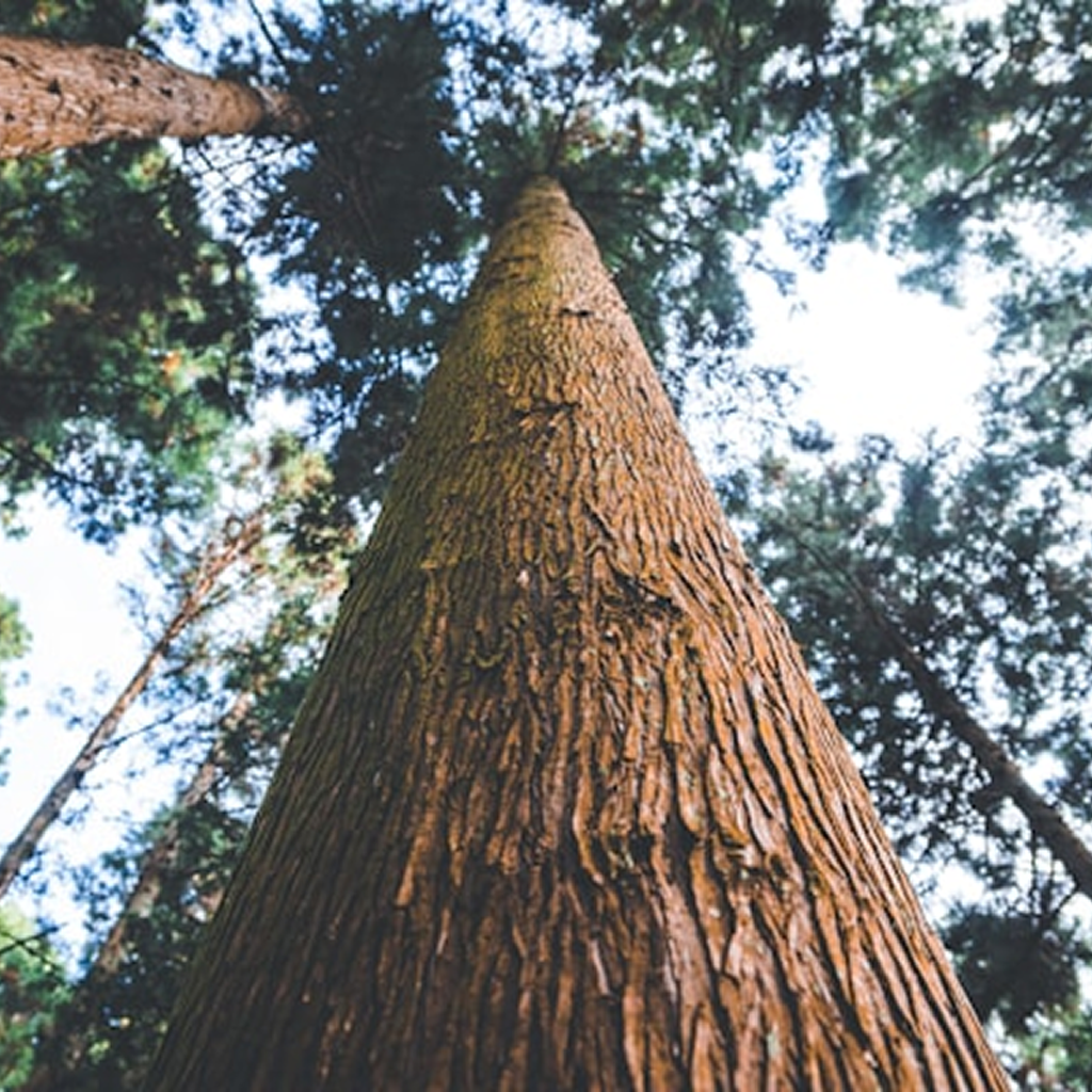 KASANEの土台となる飫肥杉。そのひとつひとつに刻まれた年輪は、宮崎の豊かな大地で過ごしてきた長い歳月の証です。木肌に触れることで、自然が重ねてきた時間の重みを感じることができます。